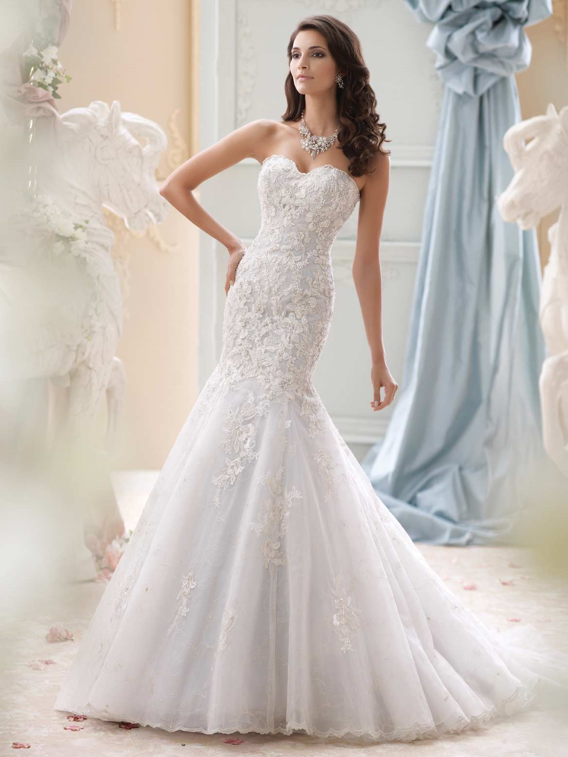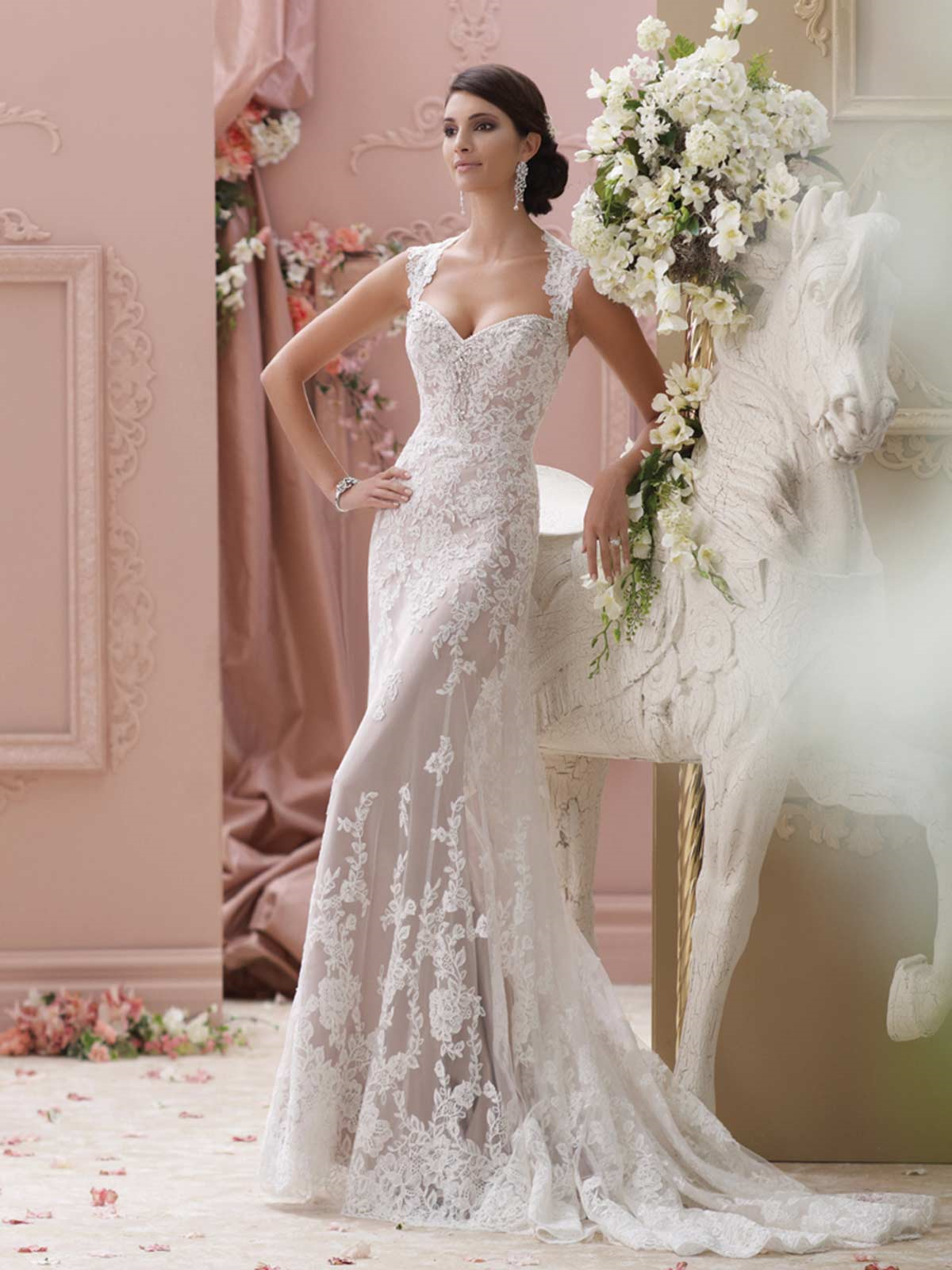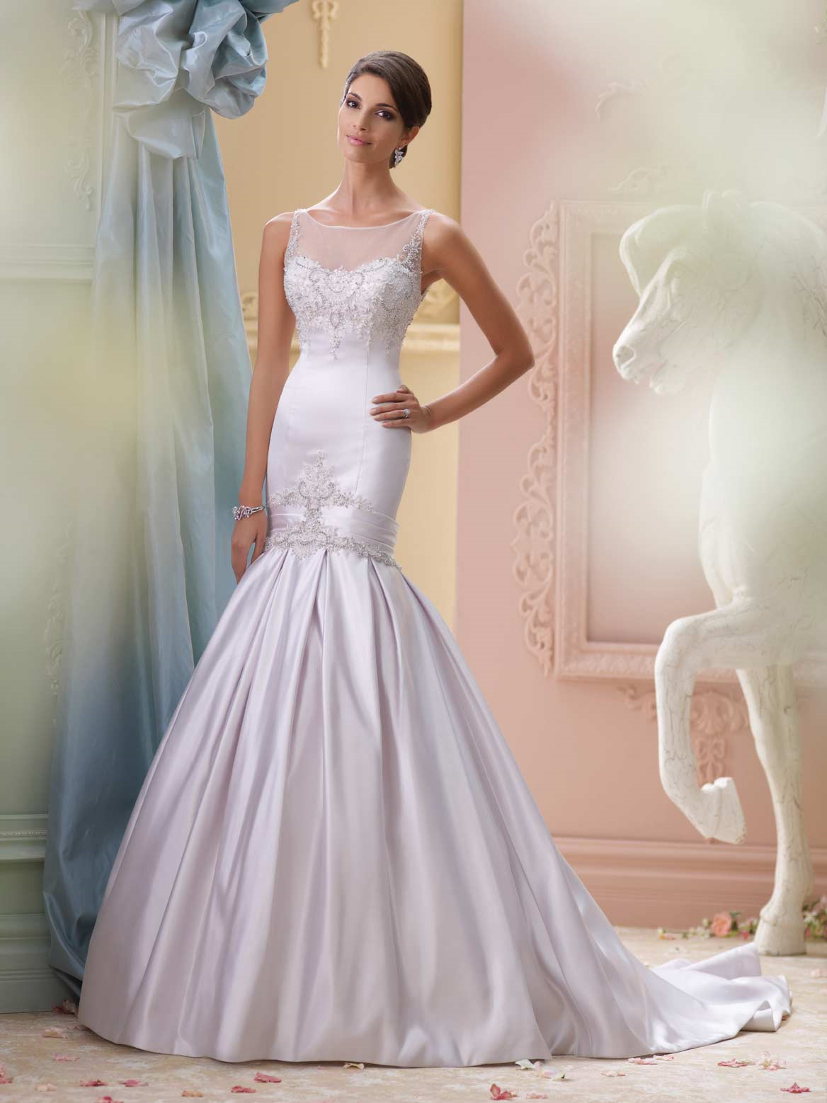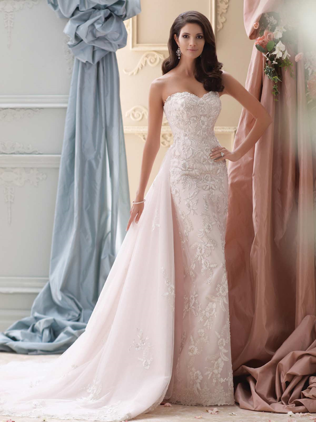 Wedding dresses and bridal gowns for every body type, David Tutera for Mon Cheri is a truly glamorous and unique wedding dress collection that captures the personality of every bride on her wedding day. David works closely with Mon Cheri designer Martin Thornburg to develop an assortment of fashionable bridal gowns ranging from traditional ball gowns to modern wedding dresses, and couture bridal fashions to more informal wedding designs. David Tutera for Mon Cheri offers today’s stylish brides with high quality fabrics, hand-beaded Swarovski crystals, and impeccable fit at an affordable price.