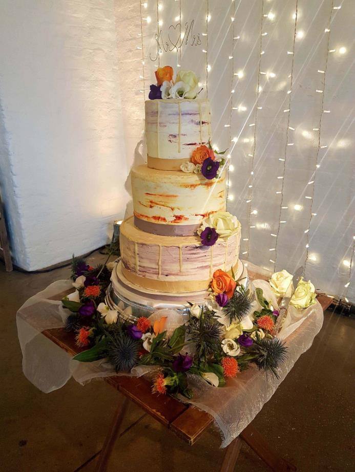 This is built around the design package we usually offer for our Naked Cakes, but with a FREE cake topper added, INCLUSION of two types of fresh flowers within a budget of ?45 and a 15% discount on the overall cost of the cake.