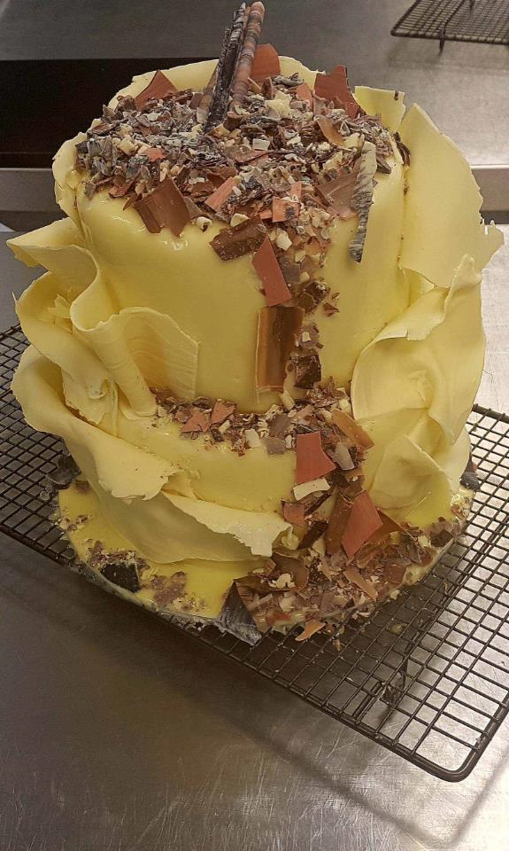 Then the speciality chocolate wedding cakes which can also be scaled up or down to not just a wedding cake. These cakes focus on featuring tempered chocolate decoration.