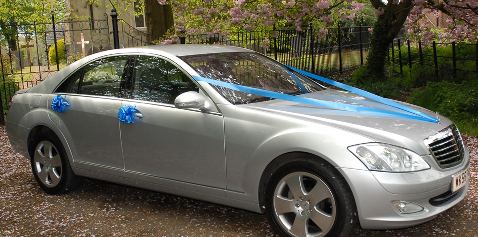 Modern S Class Silver Mercedes, finished in supple light grey leather interior. With climate control, ambient lighting and built in free view TV (should we get stuck in traffic.)
