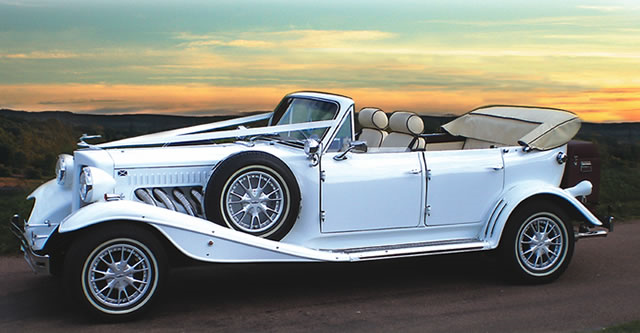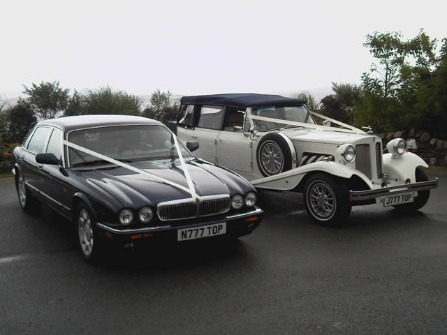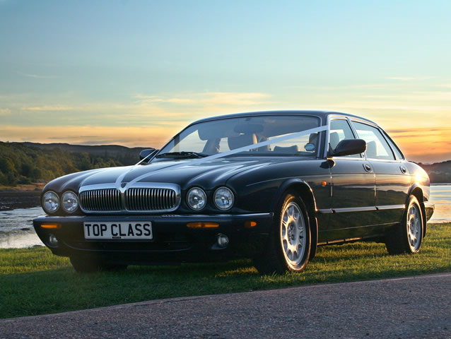 Top Class Wedding and Executive Chauffeur Hire also provide luxury Jaguar wedding cars for weddings in the Highlands, as well as birthdays and special occasions. For your wedding we can provide wedding cars with your choice of ribbon colour, silk flowers and on the full wedding package a complimentary toast of champagne is provided for the bride and groom after the wedding ceremony. Two Beauford 1930's vintage style convertible bridal cars and a Rolls Royce Silver Spirit are available for brides wishing a more traditional style of wedding car, and we also have an Asquith Coach and a 7-passenger limousine available.