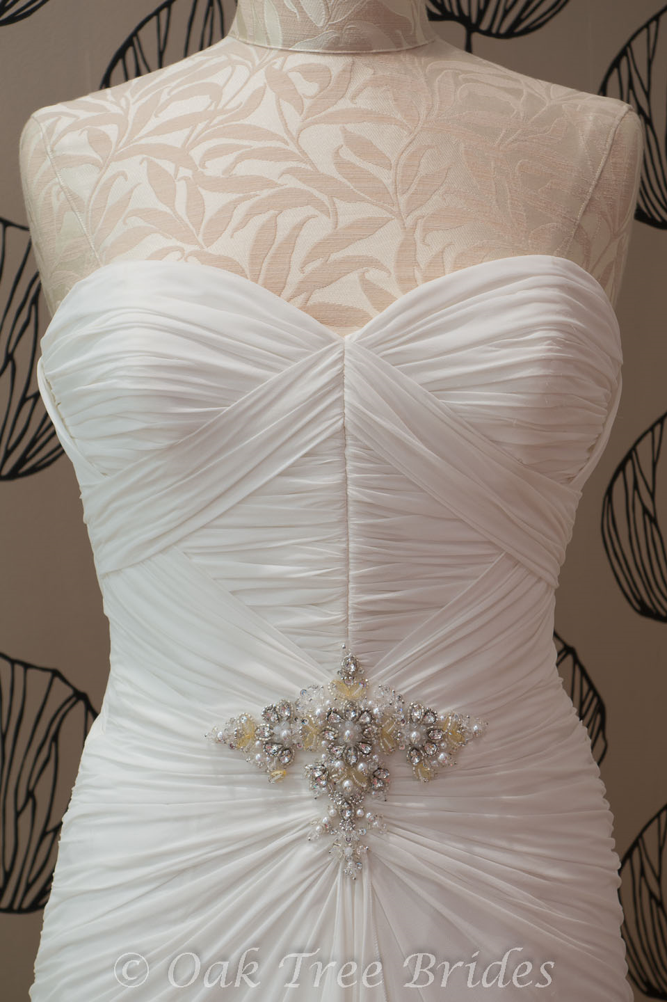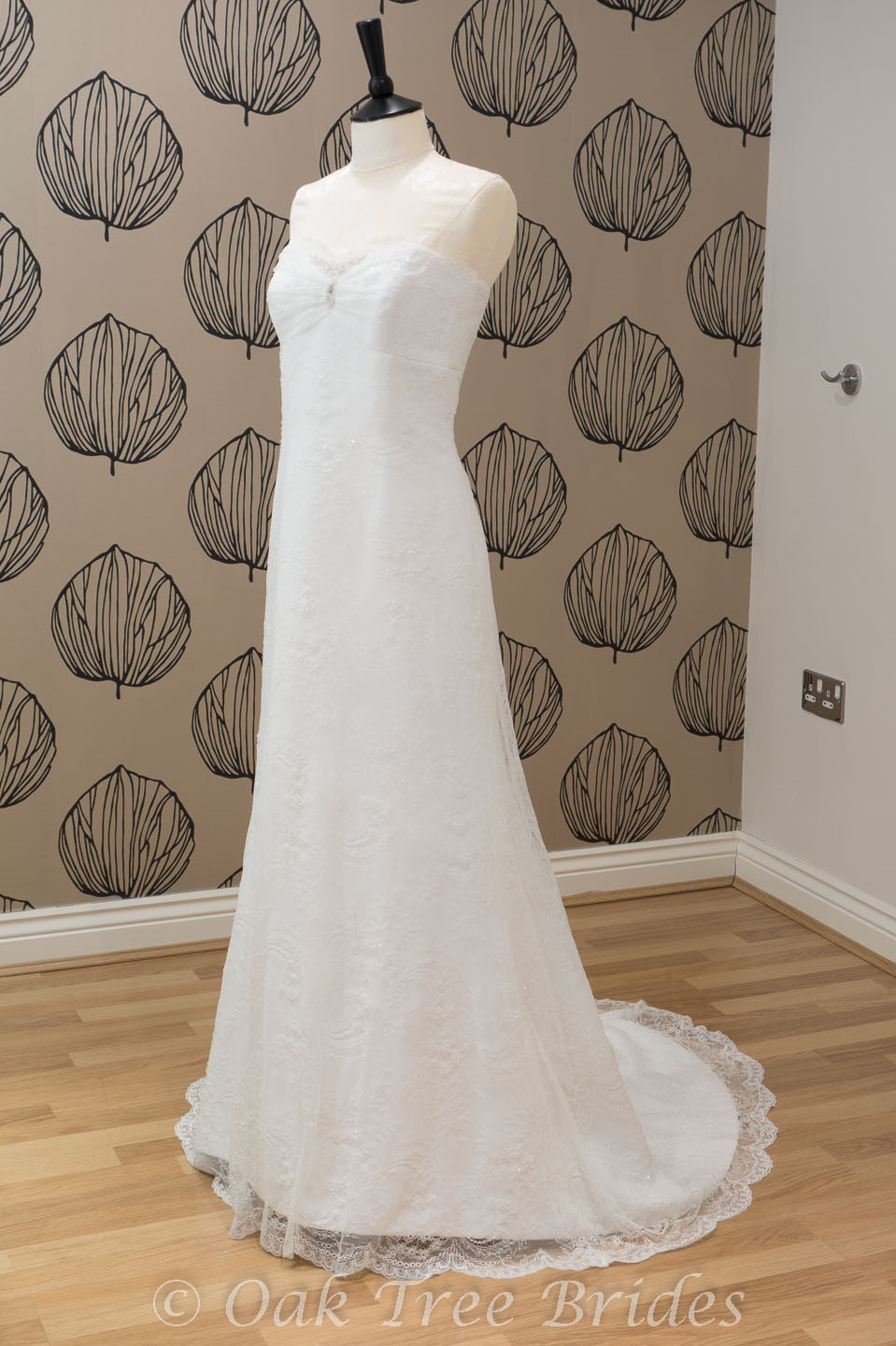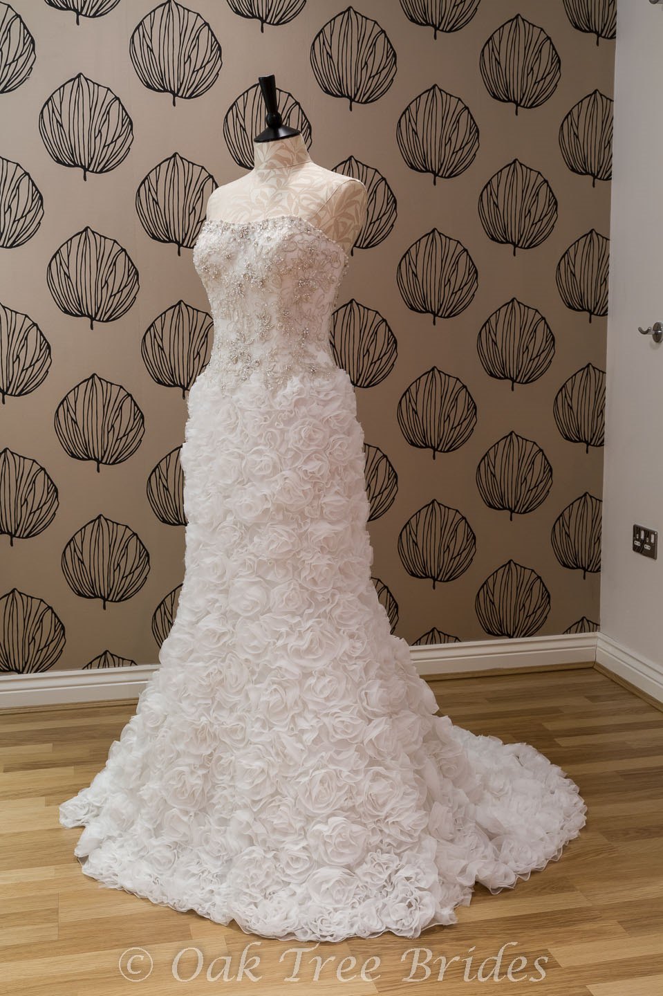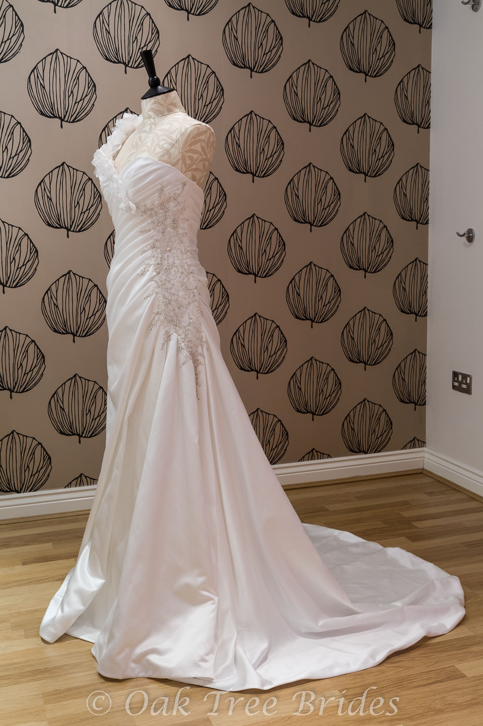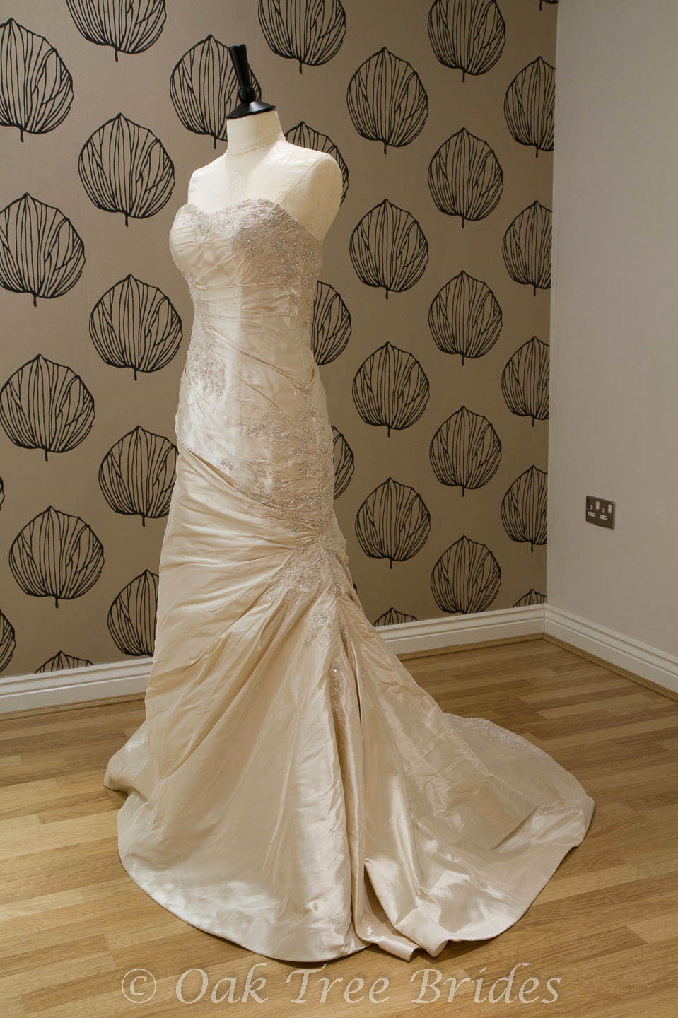 Oak Tree Brides offers the perfect solution for brides who wish to stick to a budget or are in need of their wedding dress quickly and off the peg. Our prices range from �250 and all wedding dresses are in stock so there is no need to wait months for your dress to arrive, you could take it home today! Also take a look at our sale rail for wedding dresses under �300 We have over 100 sample wedding dresses in stock and many immaculate second hand wedding dresses.