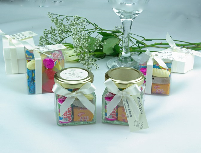 From contemporary mini glass sweet jars to traditional wedding favour boxes, our fabulous wedding favours come with oodles of different sweet fillings, personalised tags or labels and are hand-finished with a ribbon colour of your choice.  Your wedding favours will be different & simply unforgettable.