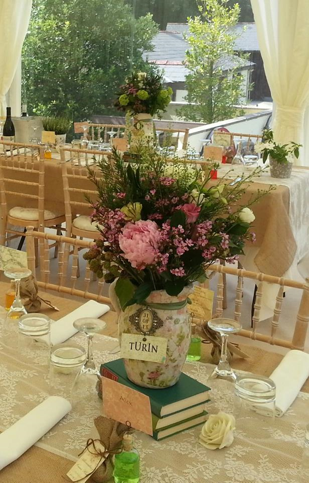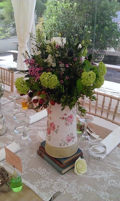 We also provide a loan service on bay trees and a wide selection on vases - or if you have something else in mind that you wish to use for your table centers or you are looking for ideas, we would be only too happy to help create them for you - from vintage jam jars, tins and buckets to classy candelabras.