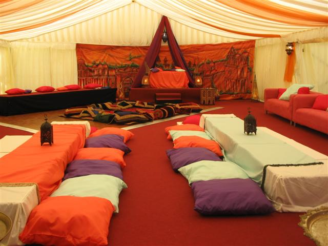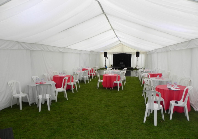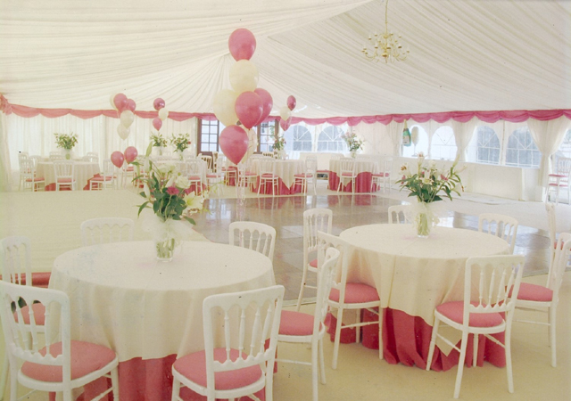 Your wedding marquee may be traditional or contemporary, simple or lavish. You may wish to consider a wedding reception marquee for drinks and canap�s, dance floor lighting and stage area for a band discreetly hidden behind a reveal curtain, a star cloth roof or a lounge marquee for guests to relax in later in the day. Through our range of marquee accessories and decoration, we can make such things happen.