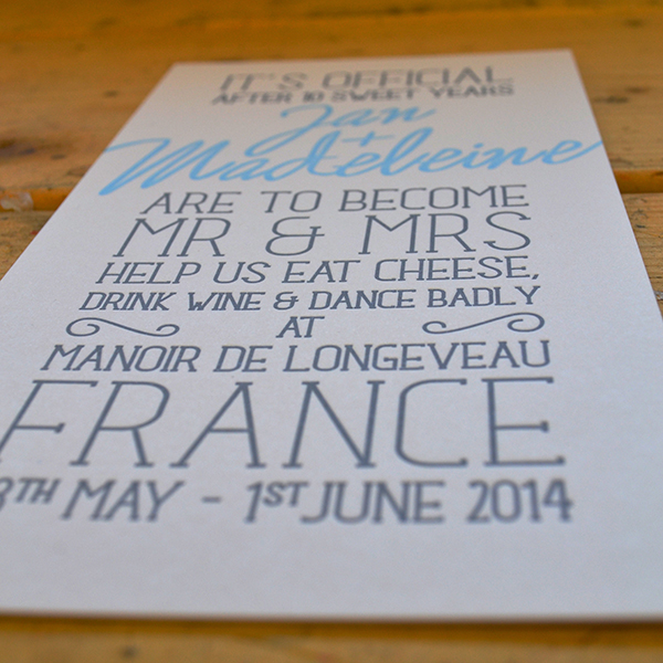 “Where is the real beauty in environmentally unfriendly, mass produced stationary that you can get anywhere? We have lost the quality within our modern culture and are producing nothing remarkable. In setting up Letterpress Design we are hoping to fill the gap that is being left by mass production and providing quality, individual stationery products at competitive prices”.