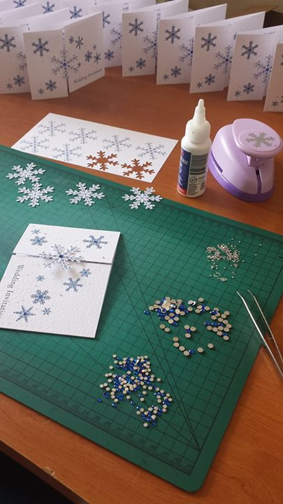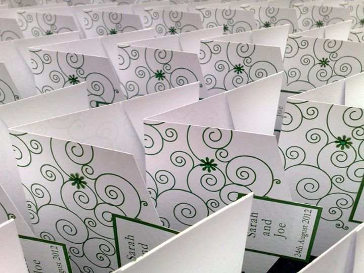 I love using our lovely hammered card and layering colours, embossing shapes (although it can get painful by the 100th invitation), and creating our range of scrummy, handmade stationery for our couples.
