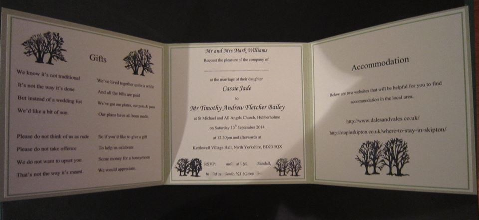 Our luxury wedding invites are produced to the highest standards; printed on high quality board and hand finished at our century old printworks in Yorkshire.