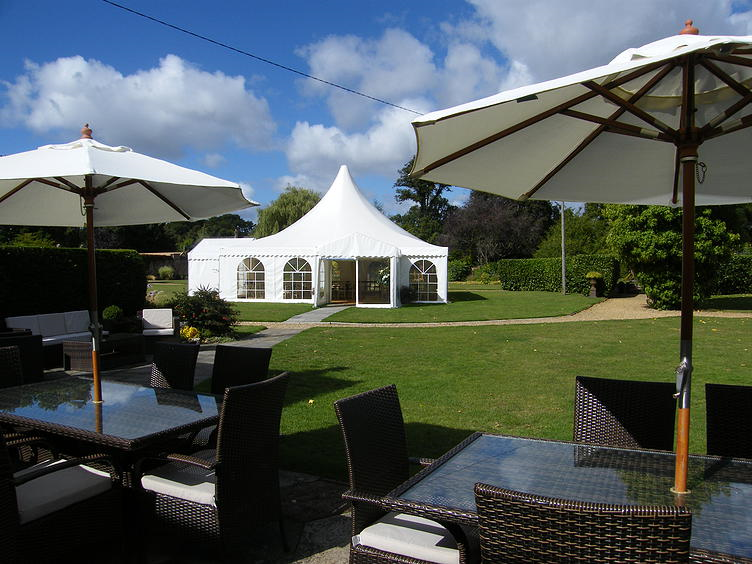 The light and airy room can accommodate 75 people to watch you say ‘I do’ in romantic surroundings. Our stunning, pagoda-style marquee, for up to 85 guests, is available for receptions on the lawn.