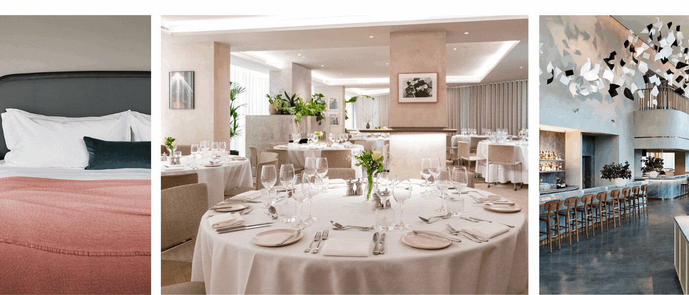 A typical wedding day flow at The Stratford includes arrival drinks in the Lounge, a ceremony in one of the modern event spaces followed by drinks on the Allegra Terrace, dinner at the fine dining Allegra restaurant, and an after-party in the stunning Mezzanine cocktail bar.