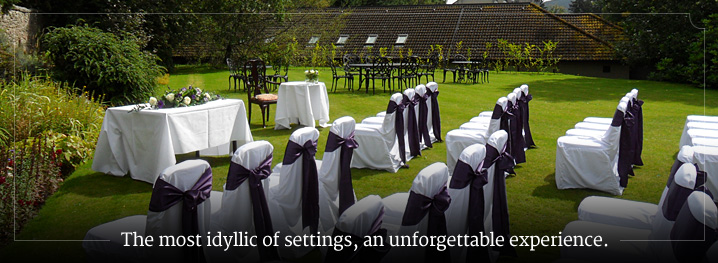 We are delighted to offer you a selection of areas within and outside the hotel to hold your wedding ceremony, like our elegant dining room which boasts natural light, the landscaped gardens or for a small and intimate wedding our lounge, next to an open log fire.