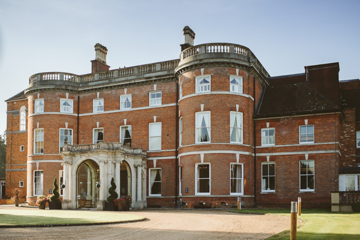 Oakley Hall Hotel, located within the peaceful North Hampshire countryside, is a beautiful spot for couples dreaming of a wedding surrounded by nature and elegance. With seven rooms for functions and a charming outdoor pavilion for ceremonies, the hotel can host both small and large weddings - up to 350 guests. Plus, the stunning countryside views make for perfect wedding photos.