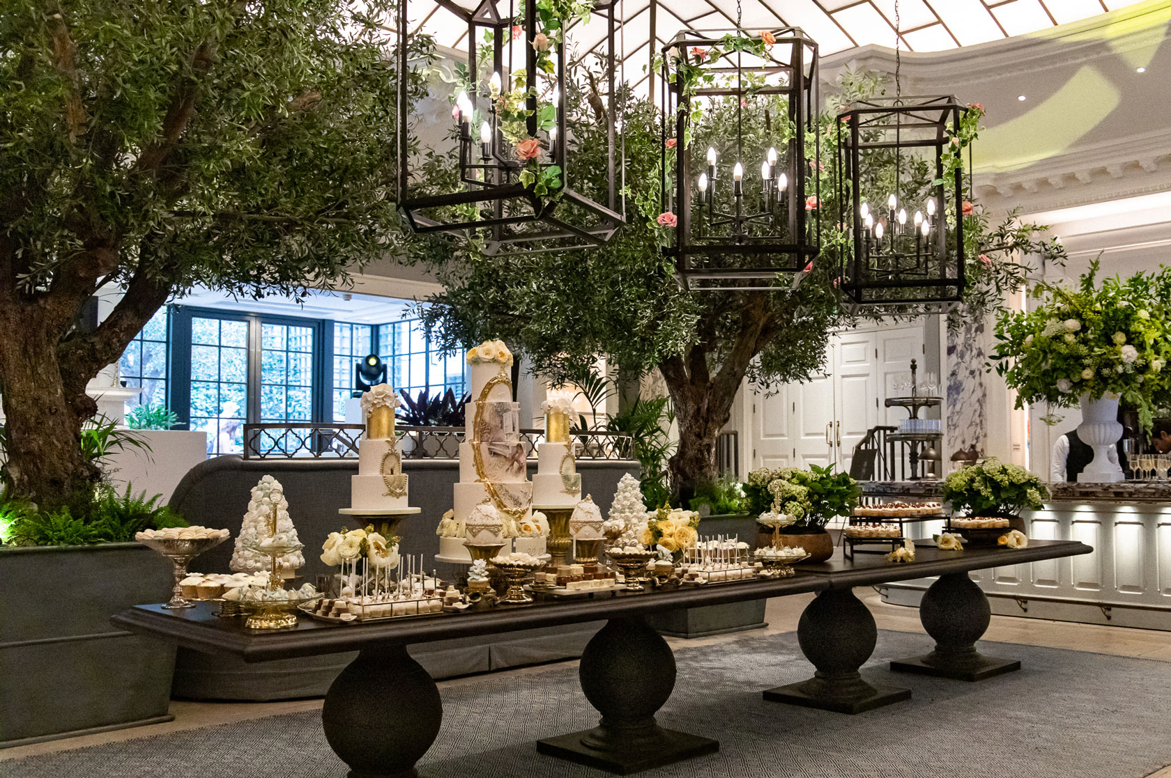 The first of the two primary event spaces that your guests will come across is the mesmerising Palm Court. Its open design and frosted glass roof gives the illusion of being outdoors. The room is thoughtfully appointed, with comfortable clusters of seats that encourage conversation, a sweeping bar for trialling the latest cocktail concoctions and two open air terraces that bookend the space with pools of natural light.