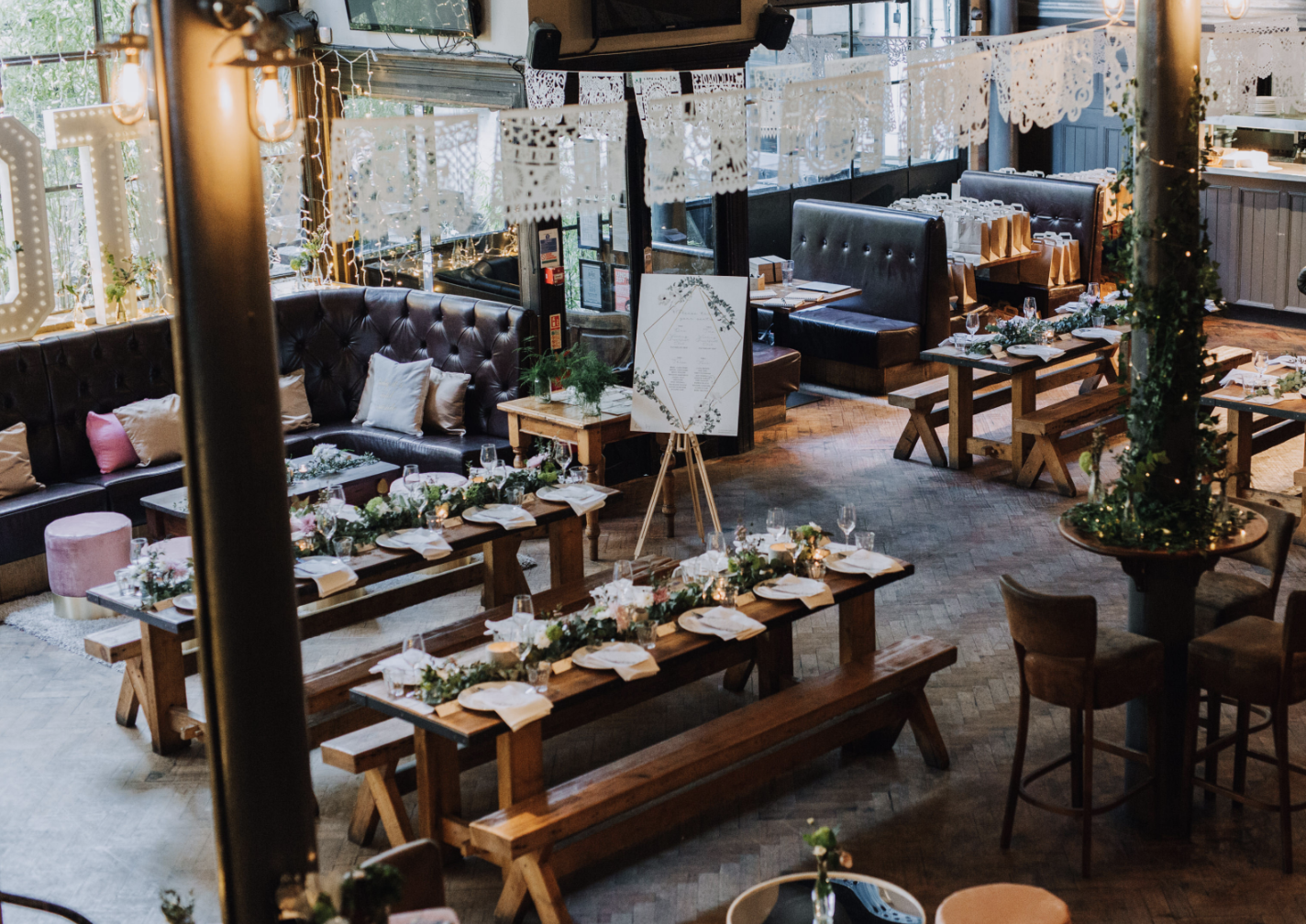 Your wedding reception at The Depot N7 will be truly unforgettable. The flexible space lets you set up everything from elegant seated dinners to lively dance floors. The grand wooden bar and cosy mezzanine add warmth, while the outdoor courtyard is perfect for mingling. With a top-notch culinary team crafting a menu tailored to your tastes—from canapés to multi-course meals—your reception will be a memorable and special event.