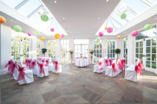 We are licensed for civil ceremonies in the Orangery for up to a 100 guests. For more intimate weddings of up to 20 guests, the Hall with its stunning staircase is licensed for civil ceremonies. The dining room with its imposing chandelier with original panelling is perfect for ceremonies for up to 30 guests