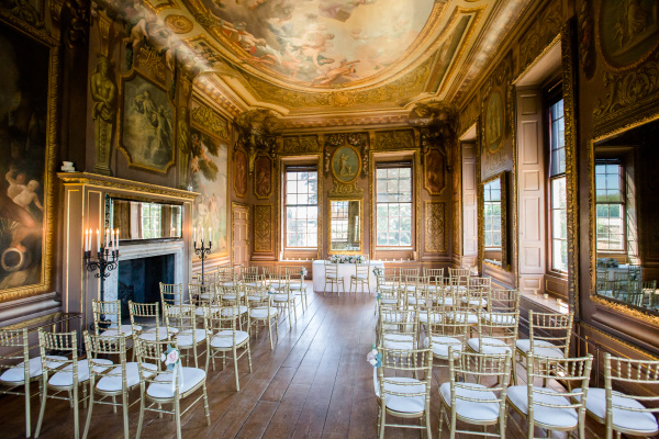 The most intimate space for Hampton Court Palace weddings is the Little Banqueting House for up to 50 guests. This charming spot on the periphery of the palace gardens overlooks the majestic River Thames and comes complete with its own sunken garden for pre-dinner drinks receptions. There is even the option for the the bride and groom to arrive via boat to the venue, to make a showstopping arrival before the ceremony. Inside the Little Banqueting House, spectacular 18th century paintings encase the suite and provide a romantic setting to say your vows.