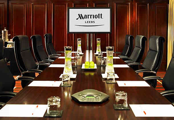 Leeds Marriott hotel is a modern, elegant four-star hotel in Leeds city centre. The hotel is a short walk to the train station, opposite the Trinity shopping centre with entertainment on its doorstep. This upscale Leeds city centre hotel welcomes you with warm, friendly staff and wonderful amenities, including spacious guest rooms with luxurious beds. The suites and executive rooms include access to the executive lounge for complimentary drinks, snacks and wi-fi. The hotel’s relaxing Leisure Club, features a swimming pool, sauna, steam room and fully equipped gym. This Leeds hotel is an ideal choice for conferences, meetings and weddings, with 17 flexible conference rooms for both intimate gatherings and large affairs. In addition, this Leeds hotel provides a unique choice of dining. The modern Midtown Grill Restaurant offers steak, chops and seafood, the AM Kitchen & Bar, is set in the iconic Dysons building offering Halal Indian cusine, and 1871 Bar & Lounge offers tasty snacks and drinks.