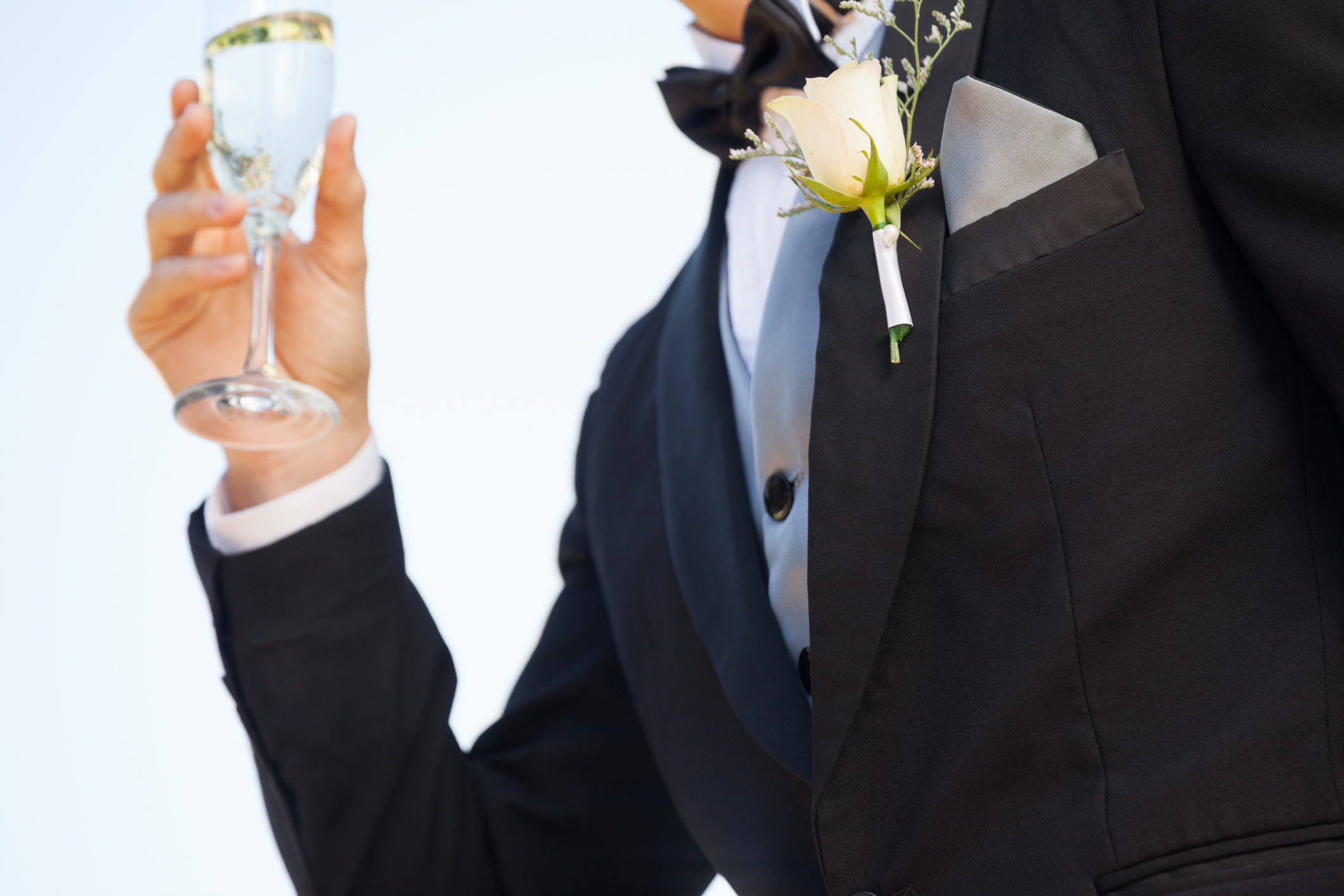 A morning suit, typically in black or grey, with a wide tail at the back is often a great pick for a daytime wedding. Menswear etiquette orders that tuxedos and dinner suits should only be worn in the evening, thus, if you are organising a lunchtime or afternoon wedding, you should ideally find an appropriate alternative.