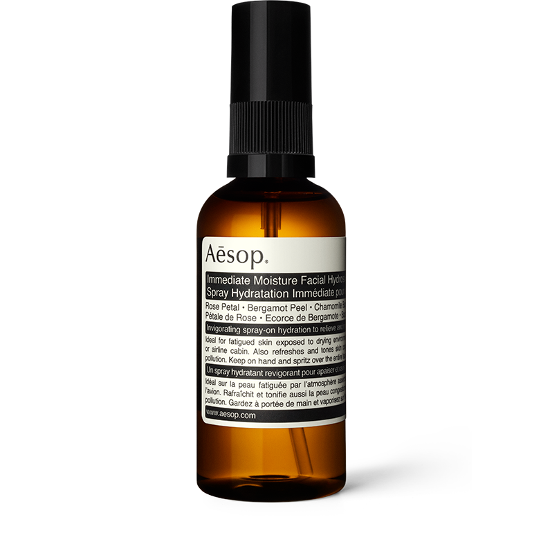 We recommend the Aesop Immediate Moisture Facial Hydrosol! It smells delightful and is perfect for a refresh while on a plane or in transit, or even as part of your daily routine.