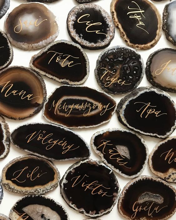 These agate calligraphy place cards are both functional and good looking, also they can be a perfect custom made wedding favour for your guests to take home.