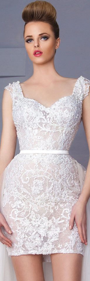 Not every bride likes frills and fuss, or even long wedding dresses dripping in layers or lace. For such brides, this figure-hugging Hanna Toumajean Couture mini gown will, no doubt, offer a tempting option.
