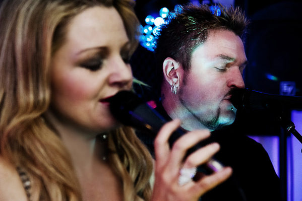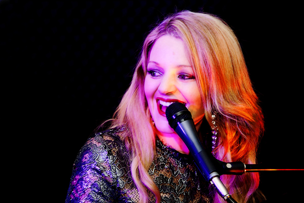 Rebecca Walker of Boutique Entertainment struts her stuff on stage with fellow band member Cliff Boatswain