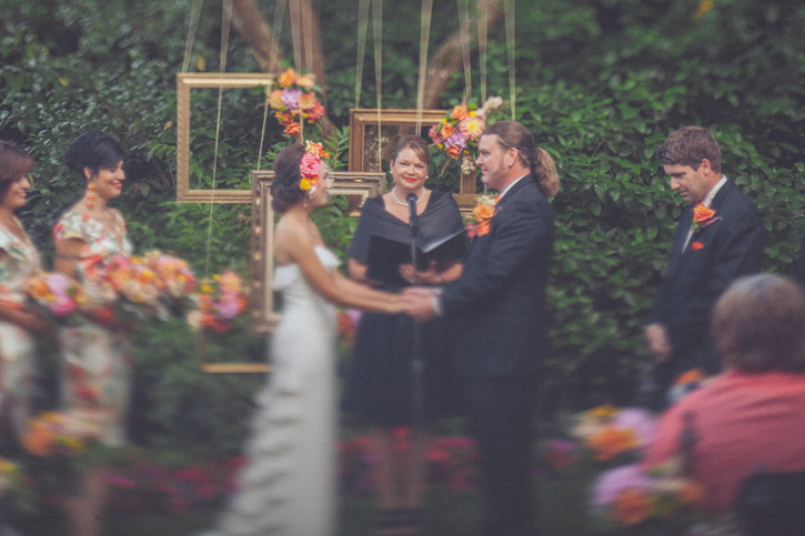 This one is a bit unusual, but we love that. You see, empty photo frames would normally feature at a photo booth or someone else where guests could use them as props, but this couple decided to make use of them as a backdrop to their ceremony, and we have to say the results are kind of stunning