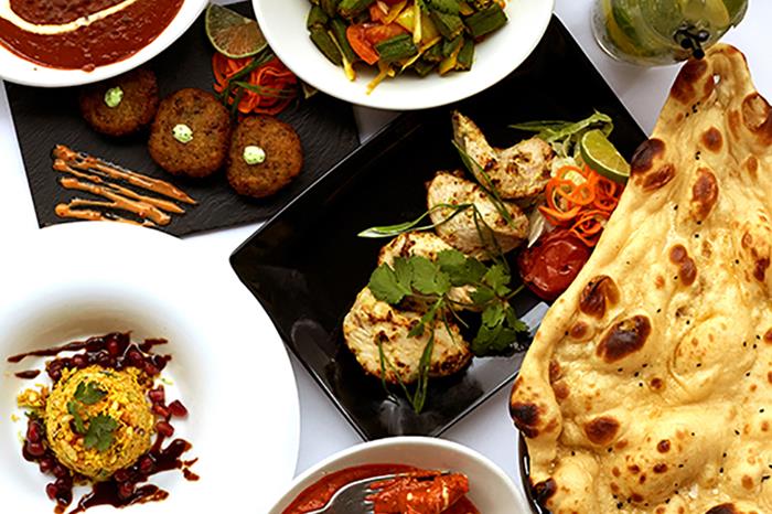 The first course arrives at the table in an enticing explosion of colour and aroma and Amit names each dish without hesitation. He has a strong understanding of the menu and how it can be adapted to suit your preferred portion size and spice tolerance. Here’s an overview of the delightful dishes served: