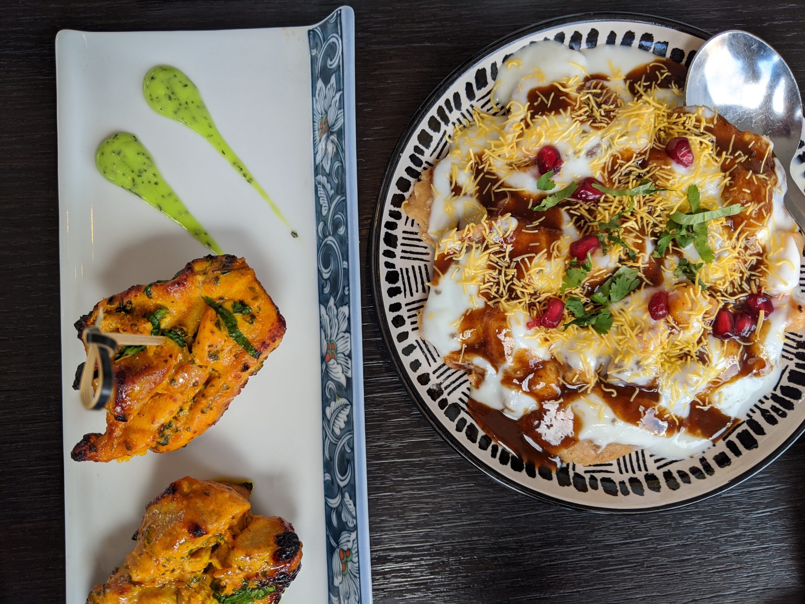 This colourful concoction of fresh ingredients is an Indian street food staple. This authentic dish is made up of flour crisps, potatoes, chickpeas, yogurt and sweet tamarind sauce, which give it that desirable balance of savoury and sweet.