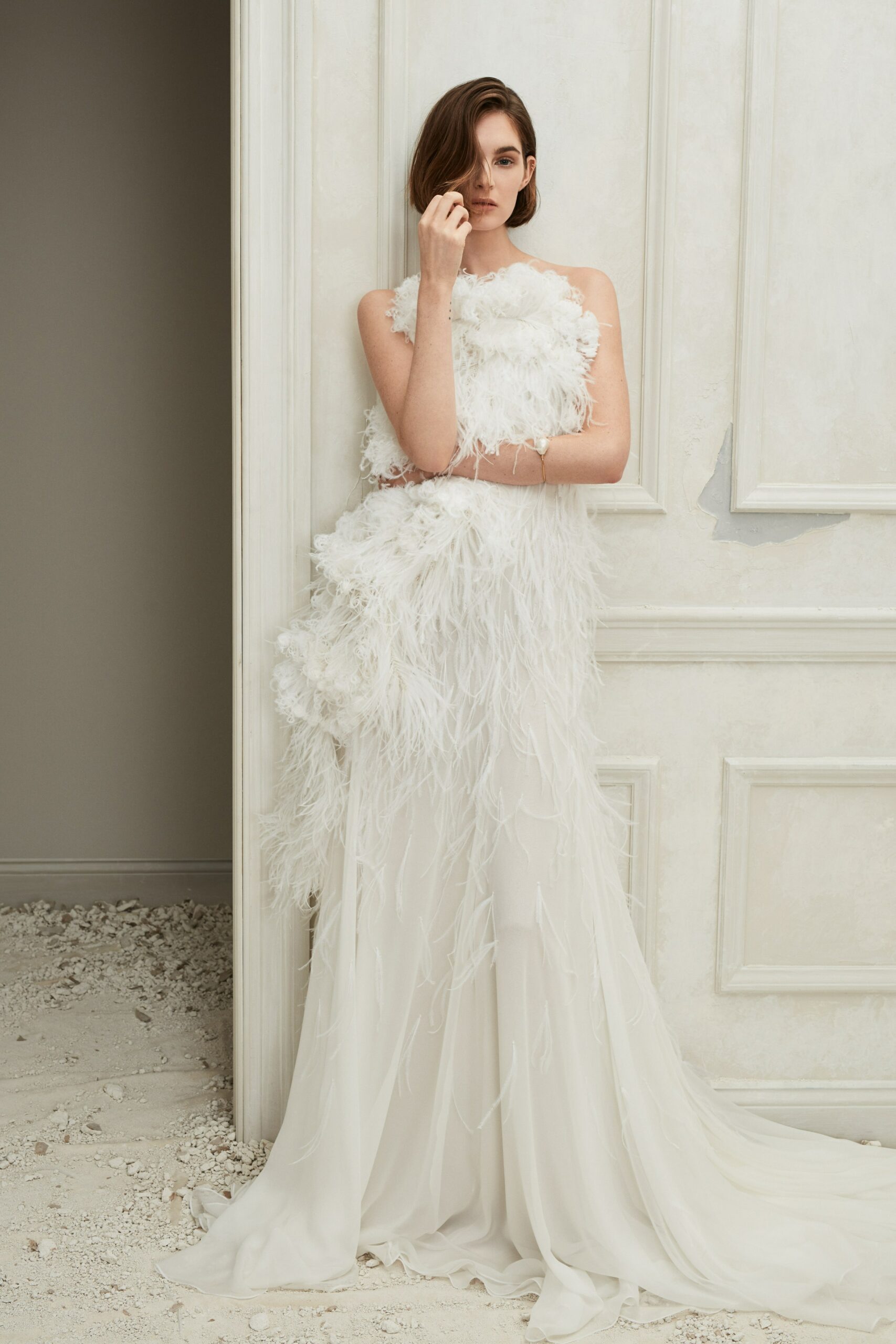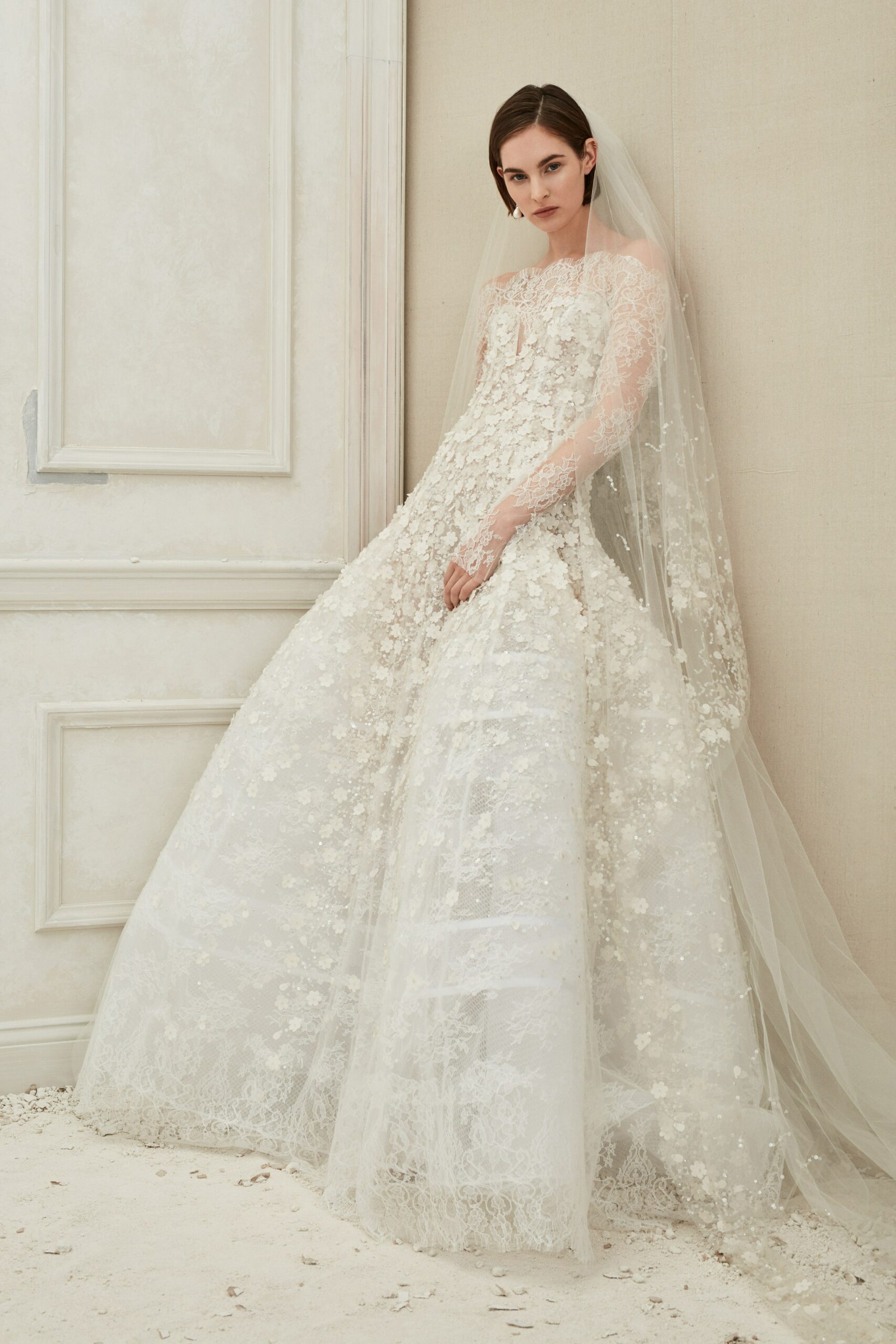 The latest bridal collection from Oscar de la Renta is incredibly diverse, with everything from embroidered ballgowns to short gowns and all over cut out lace gowns.