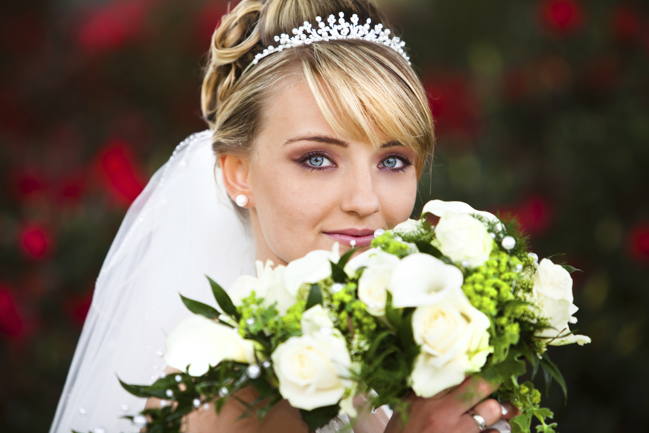 Embellishments such as beads on a veil can look like spots on a photograph. Ask someone to take a photo of you in your veil beforehand and if you are not happy with the results make sure you pull the veil back for the vital shots.