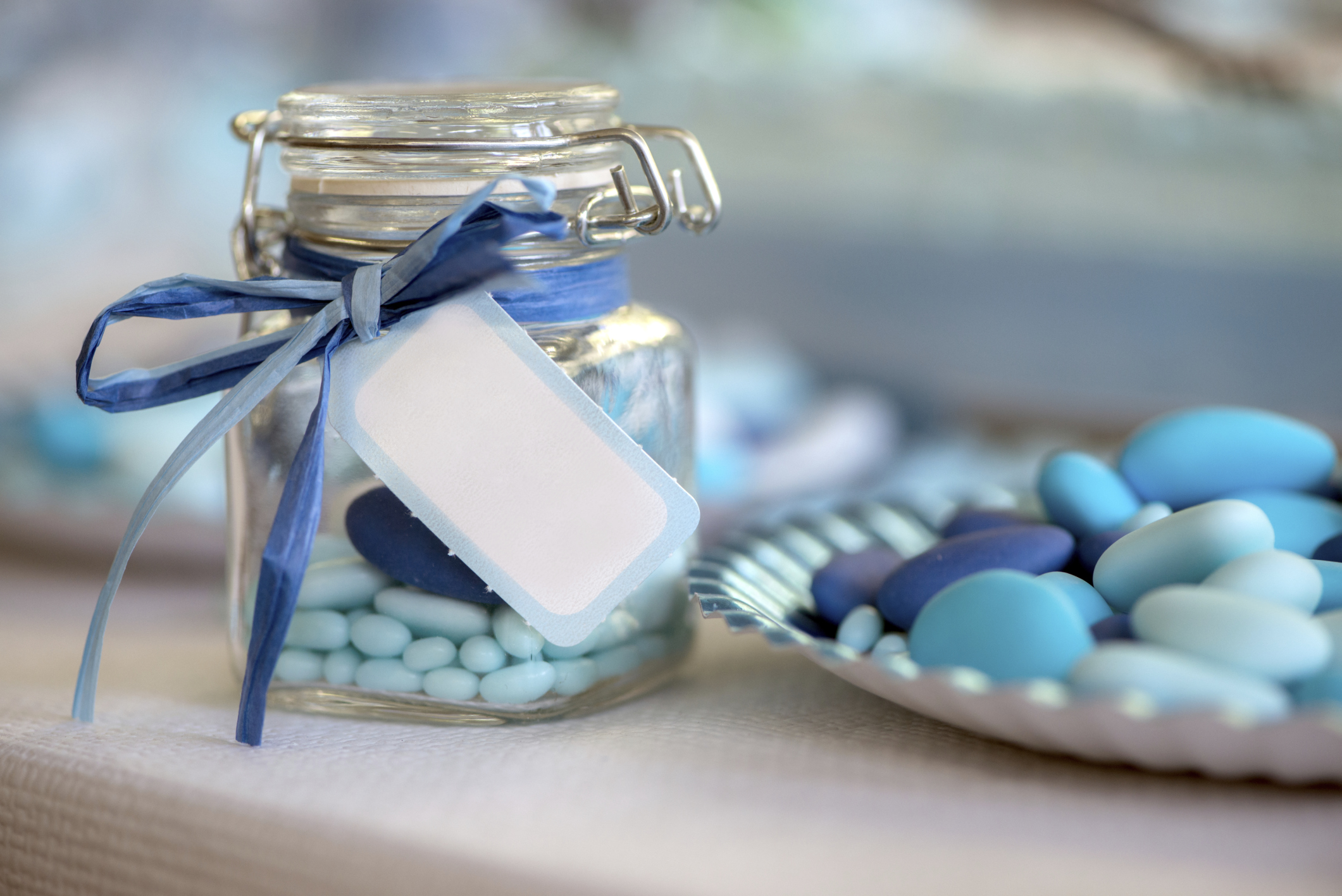It is also possible to combine your favours with the guests’ place names. You can create your own place-name tag by attaching a piece of card to your gift with a piece of ribbon or crystal. This works especially well when you are trying to keep your table arrangements minimal. Just make sure you write clearly.