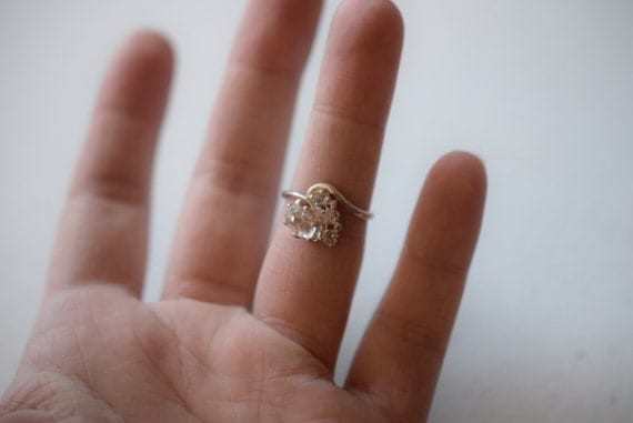 A raw diamond engagement ring doesn’t have to be a solitaire style, either! This unique ring is set with four natural stones, “fresh from the earth” and set in solid sterling silver.