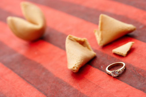 You’re probably feeling pretty lucky after the love of your life told you there’s no-one else they’d rather grow old with. Express just how lucky you feel with a physical representation showcasing your engagement ring busting out of a fortune cookie.