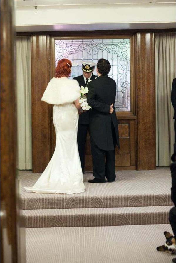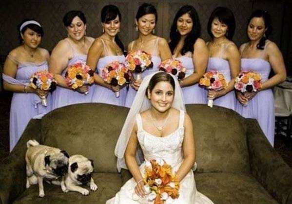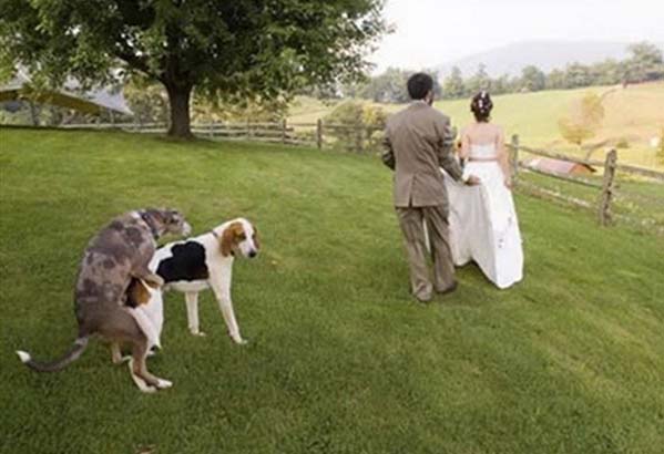 Doggone: The bride’s pet pooches chose a most inopportune time to get frisky.