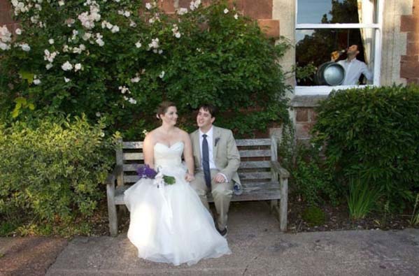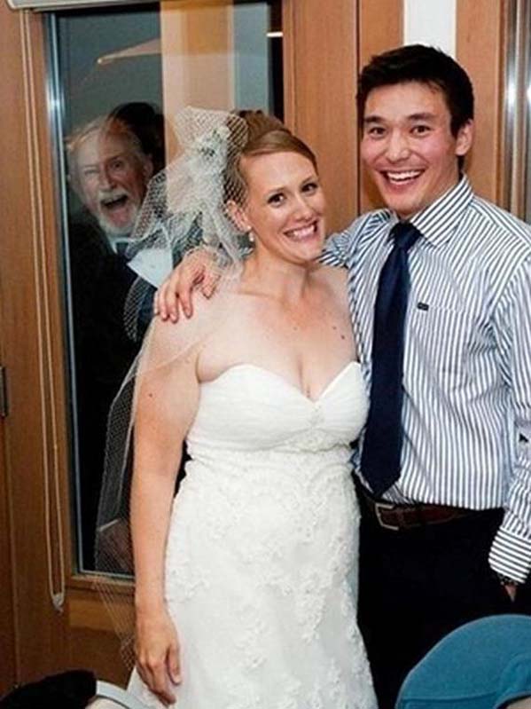 We’re not sure what the groomsman is doing in the background, but whatever it is, it’s kinda creepy!