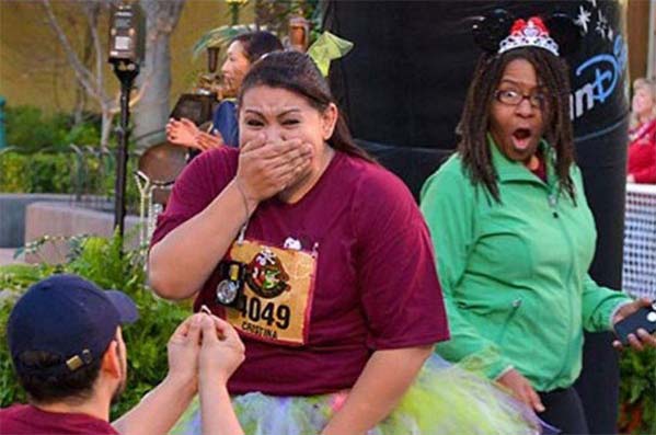 This passer by is, apparently, more surprised by this wedding proposal than the bride to be…