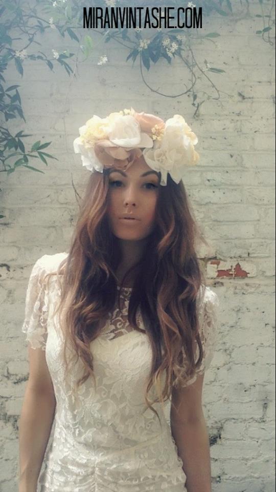 Talk about boho chic. We’re loving these funky lace wedding caps and floral crowns from Etsy Seller MiranVintashe.