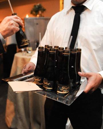 Love this idea. Hand guests a mini bottle of bubbly as they enter the reception!