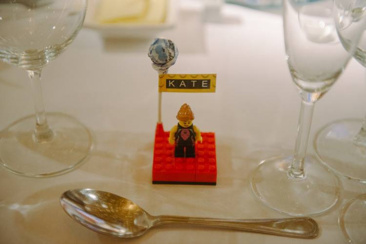 As part of their Lego-themed London wedding, Ali and Nathan’s reception namecards were replaced with handmade lego models bearing the guest’s name! Uber Cool!