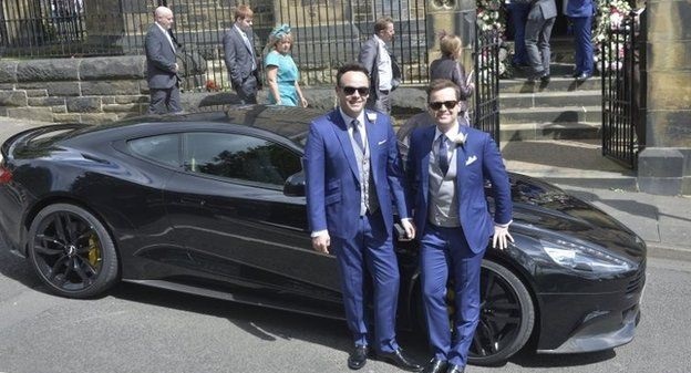 Celebrity guests, fans, and the bridal party (obviously), converged on St Michael’s Roman Catholic Church in Elswick, Newcastle for the marriage of TV funny-man Declan Donnelly, in a ceremony conducted by the groom’s own brother, Father Dermott Donnelly.