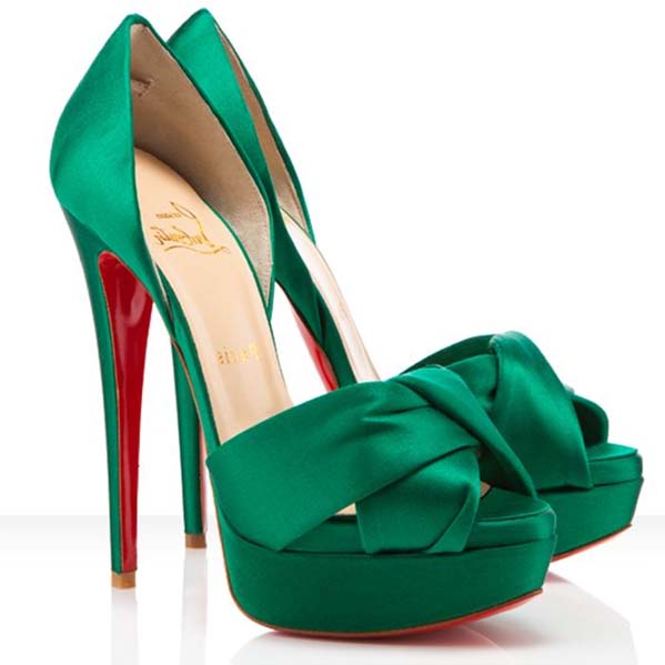 What is a post about fabulous shoes without at least one entry from Mr Christian Louboutin? This striking pair of silken heels is stylish and fashionable – and fabulously green.
