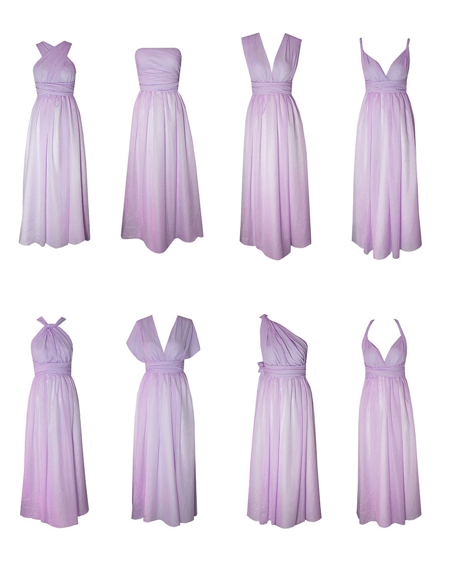 Another trend also starting to find its feet is the eight-way twist dress (below) which, as its name suggests, can be worn in a multitude of ways to suit all figures, from strapless to one-shoulder to mini or a longer length. Wedding pundits predict it will only go from strength to strength as it unifies a wedding party while playing to each bridesmaid’s strengths.