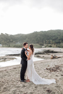 What the bride wears to her destination wedding often depends on the location chosen. If, for instance, the couple has chosen a beach destination, she might wear a flowy lace number paired with bare feet and flowers in her hair. Similarly, it might look and feel strange to wear a princess dress on the black sand beaches of Bali.