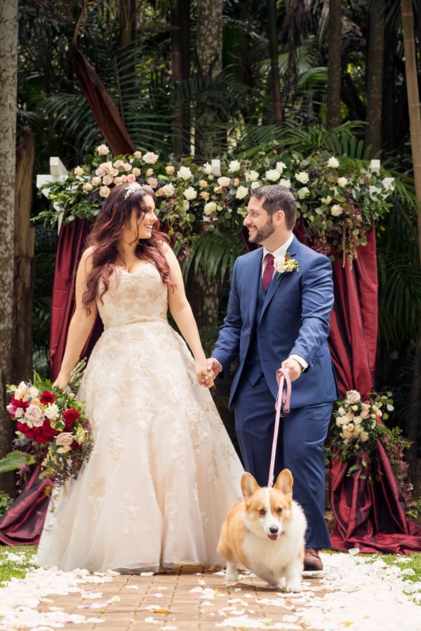 A floral or greenery garland is a beautiful way to integrate your puppy into the wedding style and theme and still keep them restrained which is great if your venue is concerned about them wandering.