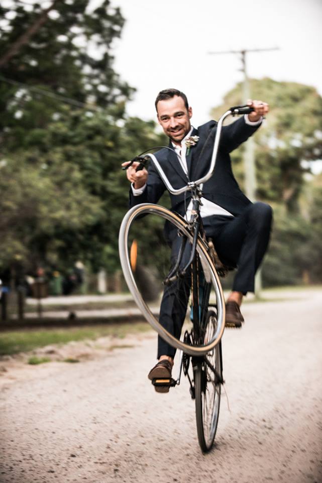 We’re going to assume he got to the ceremony both on time and in one piece. Such a great photo idea for the groom – and one that offers a fun and funky contrast to the classic shot of a bride arriving in the back of a limousine.
