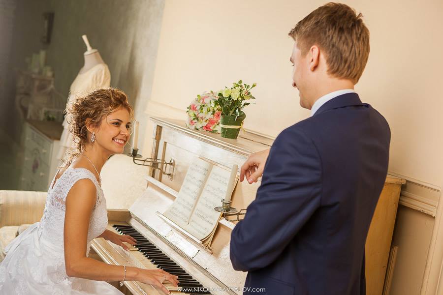 What a lovely way to photograph the shiny rings of these newlyweds, Aleksei and Anna, both of whom are pianists!