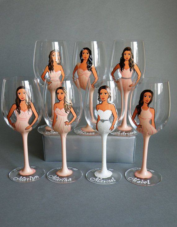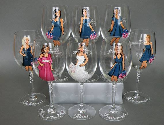 Here’s a present your bridal party are guaranteed to treasure: Personalised champagne flutes and shot glasses. The artist, Pastinshs on Etsy, creates them from scratch using non-toxic paint. http://ewed.us/QuxQs