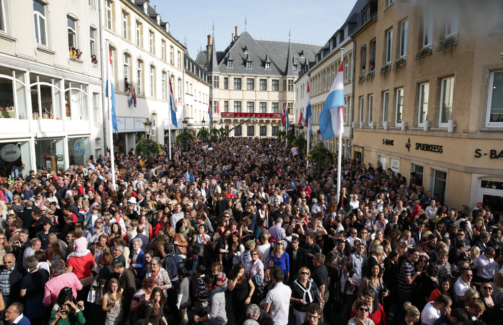 They then drove off to their honeymoon in a limousine attached to which was a sign that read ‘Just Married’ in Luxembourgish.