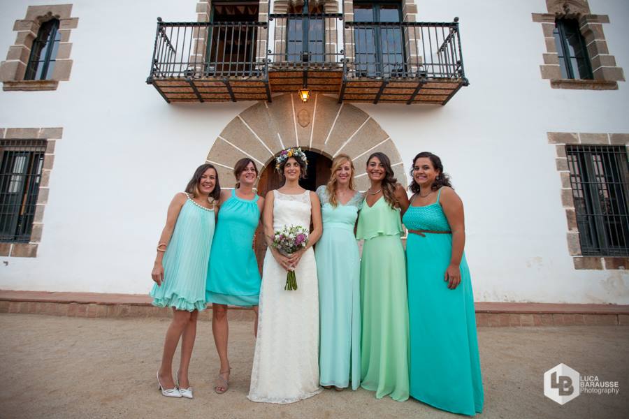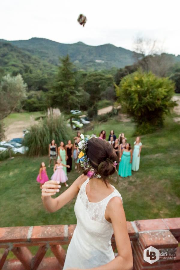 There are so many things to love about Marco and Laura’s Spanish nuptials, from the balcony bouquet toss to the magical colours of their wedding photos, we’re particularly smitten by the sea-inspired hues of the bridesmaids gowns and, of course, the fact that guests threw leaves at them after their wedding ceremony rather than confetti!